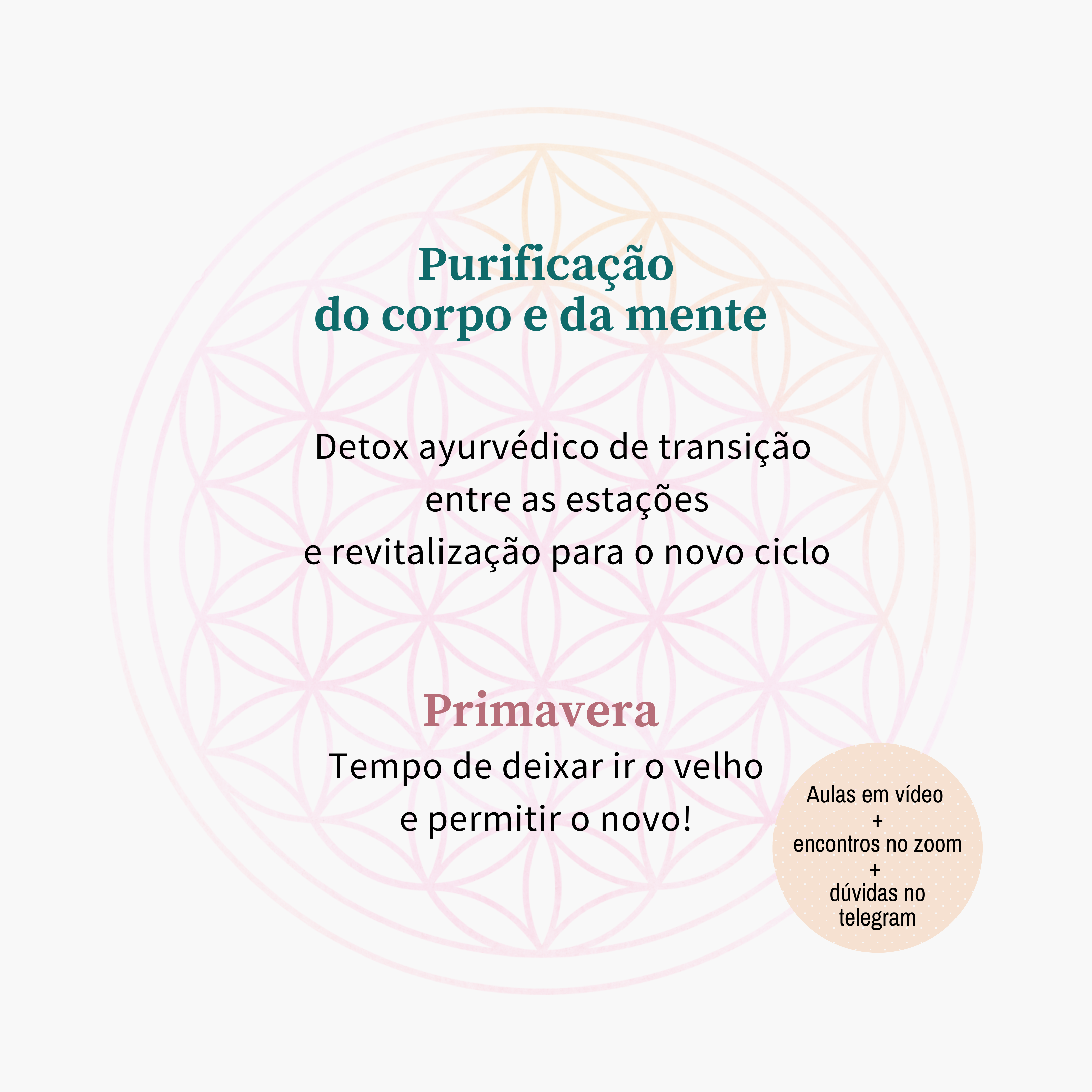 Programa online que terá como principal ferramenta de transformação um protocolo ayurvédico de desintoxicação e revitalização física e mental.